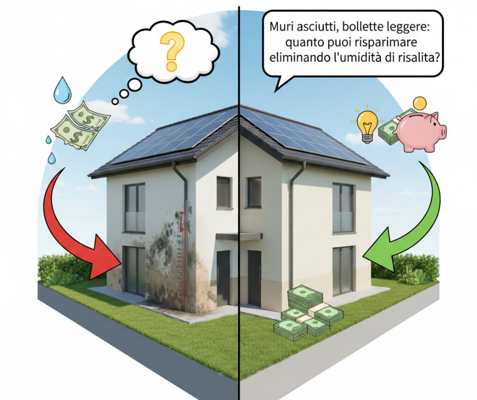 Troppo spesso considerata solo un problema estetico (macchie, intonaco che si stacca, muffa), l’umidità è in realtà uno dei principali nemici del tuo portafoglio. In questo articolo vedremo perché un muro asciutto è il miglior investimento energetico che tu possa fare.