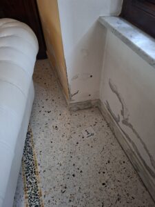 Prima dell'intervento di AQUAPOL®, l'immobile sito a Masone presentava le problematiche tipiche causate dall'umidità di risalita. I muri della pasticceria manifestavano segni evidenti di degrado, con distacchi di intonaco, efflorescenze saline e un persistente odore di muffa che rendeva l'ambiente poco salubre sia per i clienti che per lo staff. La struttura necessitava di una soluzione deumidificazione definitiva per preservare l'integrità dei locali e la qualità dei prodotti artigianali.